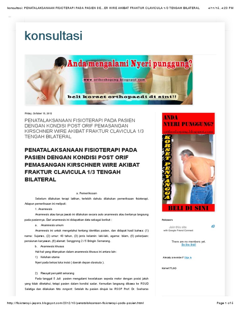 Tentang Penatalaksanaan Fisioterapi Pada Kasus Cervical Root Syndrome (Siap) trending